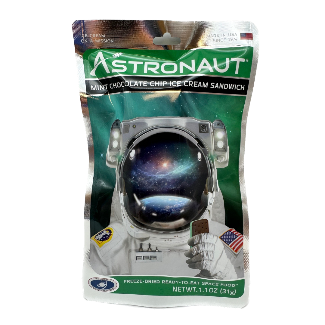Embark on a stellar flavor odyssey with Astronaut Mint Chocolate Chip Ice Cream Sandwiches! Dive into the freeze-dried wonders that bring together the refreshing zing of mint with the indulgent notes of chocolate chips. Each bite offers a delightful crunch, merging cool minty bliss with rich chocolate surprises.